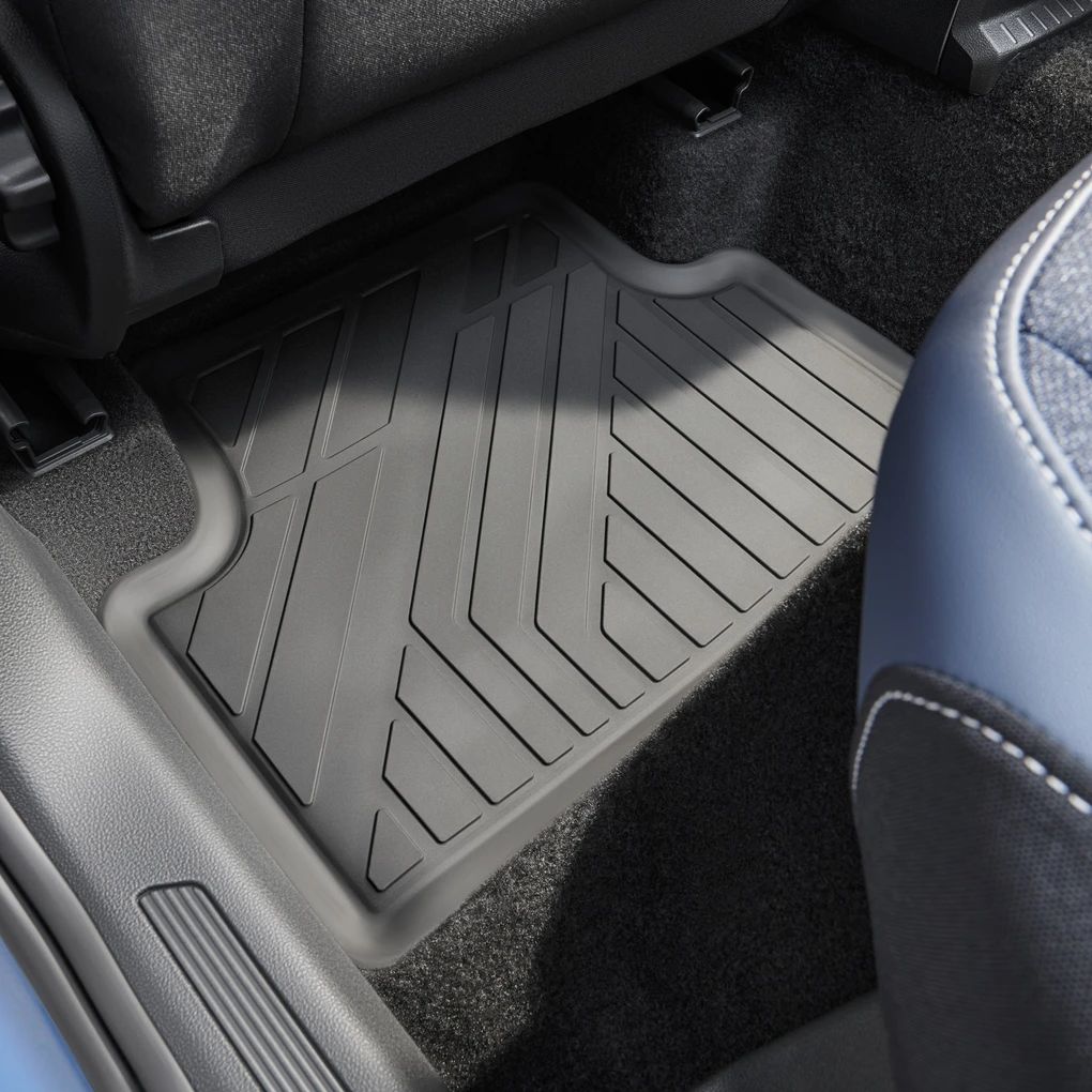 Zahvaljujući Volkswagen originalnim prostirkama za sve vremenske uvjete vaše je vozilo zaštićeno od vlage i prljavštine. Izrađene su točno po mjeri, otporne su na klizanje i jednostavno se peru. Vizualna značajka je integrirani natpis modela T-Cross na prednjoj strani. Osim toga, podne prostirke se mogu 100% reciklirati, jako su čvrste i dugotrajne. Zahvaljujući materijalu, originalne prostirke za sve vremenske uvjete su znatno lakše od uobičajenih podnih prostirki.