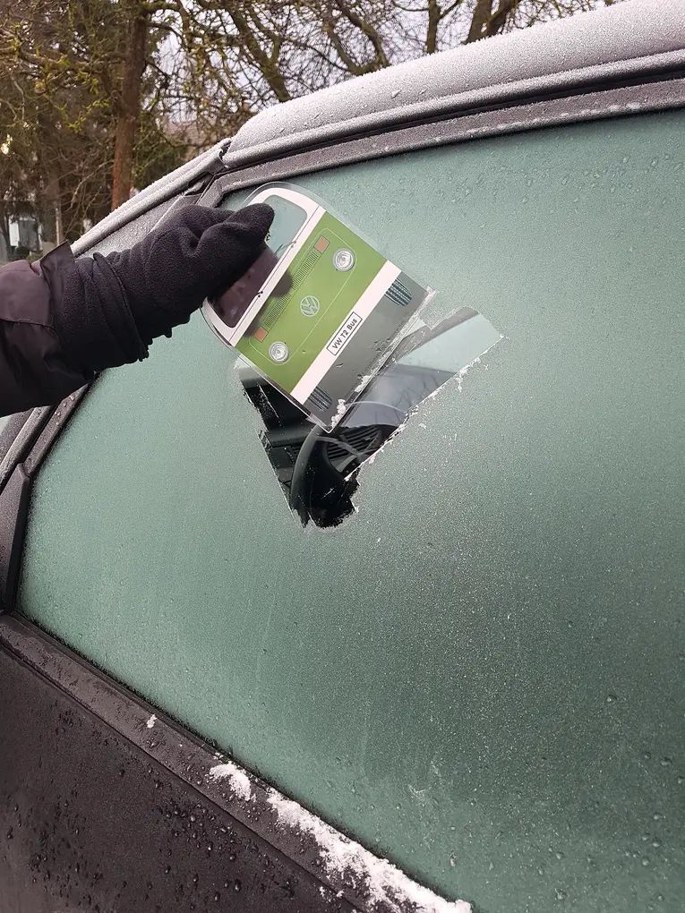 S VW T2 busom strugati led s vjetrobranskog stakla? Zvuči neobično, ali strugač leda u dizajnu prednjeg i stražnjeg dijela VW T2 busa to omogućuje – jedinstven dodatak za vaše vozilo. Strugač je izrađen od visokokvalitetnog i izdržljivog polikarbonata, precizno izrezanog po konturama. Polikarbonat se odlikuje posebnom otpornošću na lomljenje čak i pri vrlo niskim temperaturama. Zahvaljujući oštrom (90°) prednjem rubu, led se može učinkovito ukloniti i kod jače zaleđenih stakala. Prijevremeno trošenje ili pucanje ruba za struganje potpuno je spriječeno zahvaljujući obostrano upotrebljivom 90° rubu. Zeleni strugač proizveden je u Italiji.