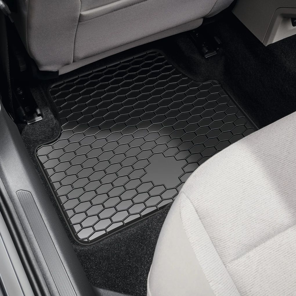 Originalni gumeni tepisi optimalno su prilagođeni mjerama podnice vozila. U kombinaciji s protukliznom zaštitom na donjoj strani i pričvršćivanjem na dvije točke, prednji tepisi u svim uvjetima korištenja ostaju fiksirani. Komplet se sastoji od četiri prostirke, za prednji i stražnji red sjedala.