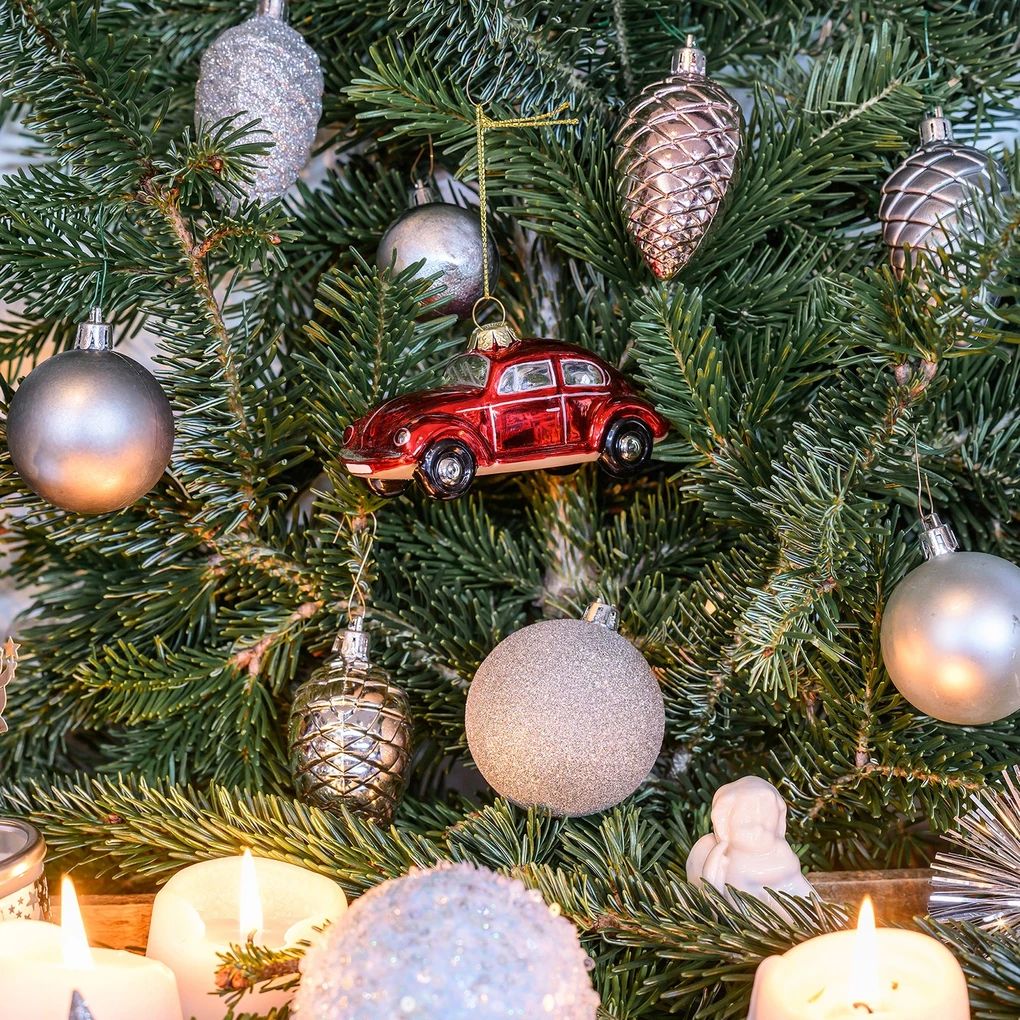 Volkswagen Buba božićni ukras od stakla – crveni