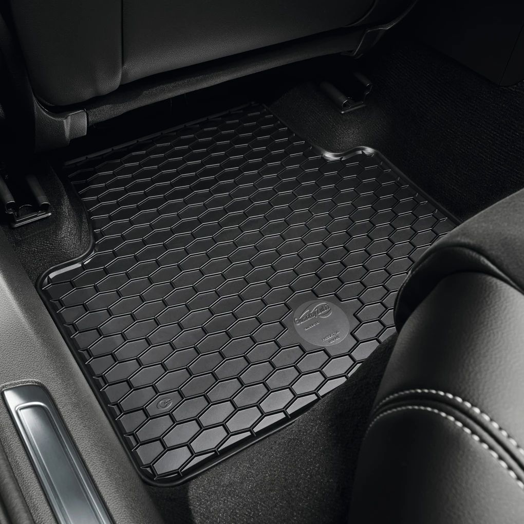 Originalni gumeni tepisi optimalno su prilagođeni mjerama podnice vozila. U kombinaciji s protukliznom zaštitom na donjoj strani i pričvršćivanjem na dvije točke, prednji tepisi u svim uvjetima korištenja ostaju fiksirani. Komplet se sastoji od četiri prostirke, za prednji i stražnji red sjedala.