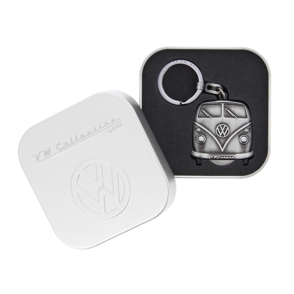 Privjesak za ključeve s odličnim dodatkom! Prednji dio Bullija u optici antik srebra izgleda odlično sam po sebi. No ovaj Bulli ima čak i „rezervni kotač“ u obliku tokena za kolica. Poseban dodatak: svaki je privjesak pakiran u elegantnu metalnu poklon kutiju!